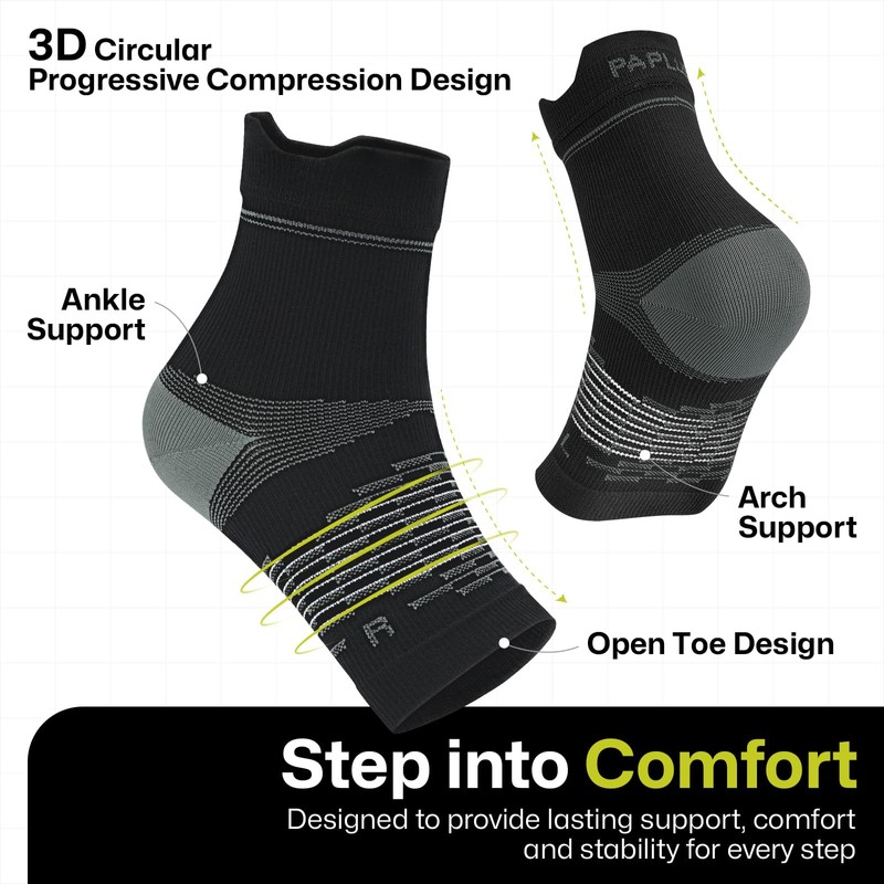 - 【Arch & Ankle Support – Stability with Every Step】Our ankle compression sleeves provide effective arch and ankle support to reduce heel pressure, promote blood circulation, and increase foot flexibility. They help transfer excessive fascial pressure to relieve arch and heel discomfort. Wearing them at night can maintain proper foot positioning and help you wake up without stiffness