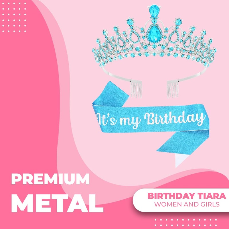 Papoopy Birthday Tiara and Crown with Sash, Birthday Tiara for Women Birthday Party (Blue)