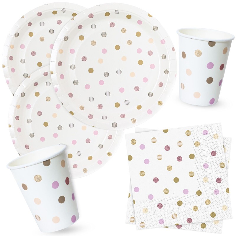 Pappteller Servietten Pappbecher Partygeschirr Set Punkt Bunt Tischdeko zum Geburtstag, Kindergeburtstag für 16 Gäste