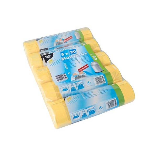 PAPSTAR 100 x Drawstring Bin Bags HDPE 60L 71cm x 64cm Yellow You will receive 100