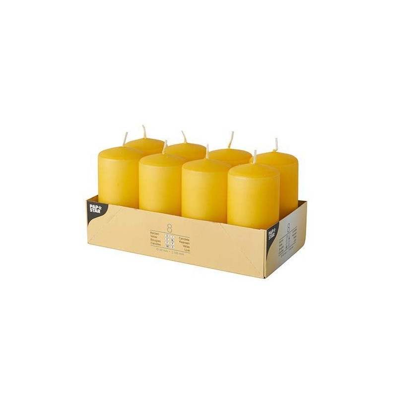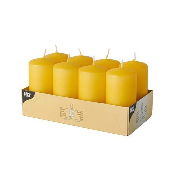 PAPSTAR 8 Stumpenkerzen Ø 50 mm, 100 mm goldgelb 17986