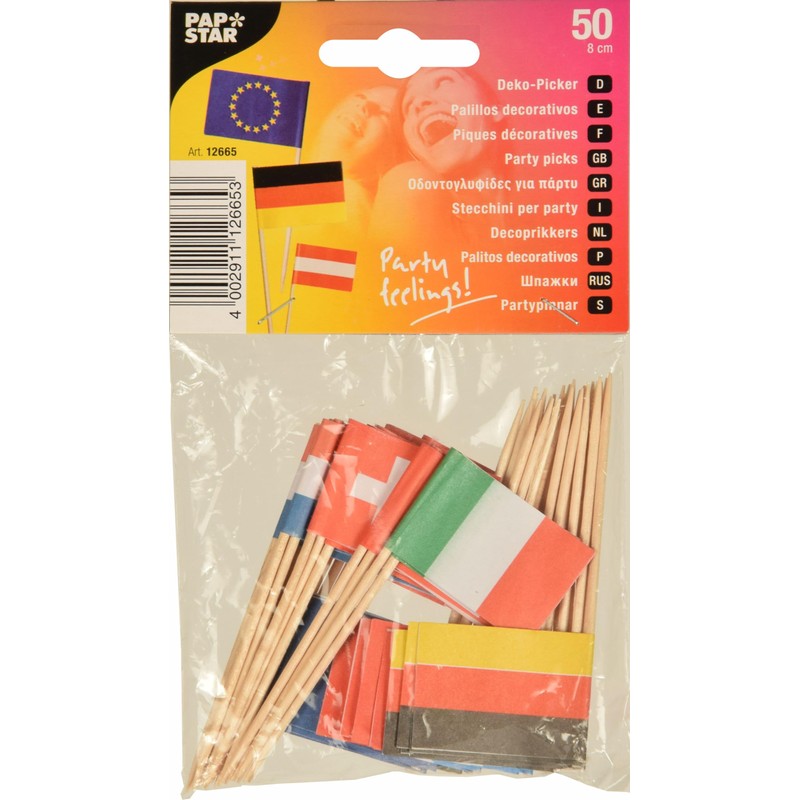 PAPSTAR Flags Assorted 1 BOX = 20 x 50 Toothpicks with Decorative 7 cm 12665