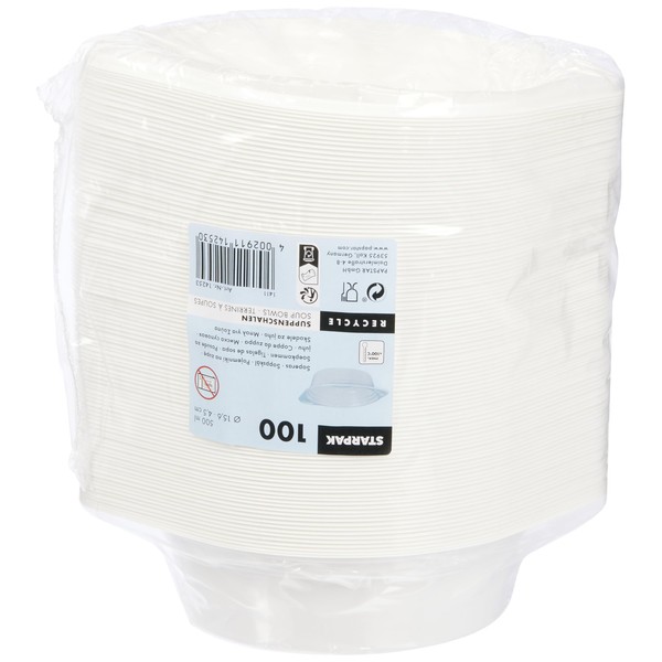PAPSTAR Kunststoff Suppenschalen, 500 ml, Weiß, 100 Stück