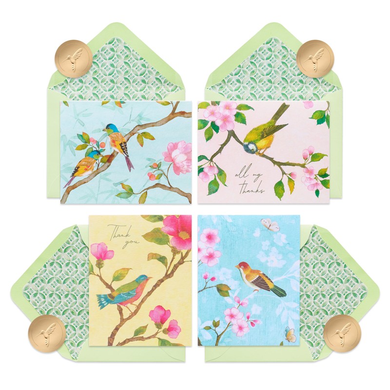 • These blank cards feature four vibrant designs of birds and blossoms, beautifully capturing Chris Chun's artistic style