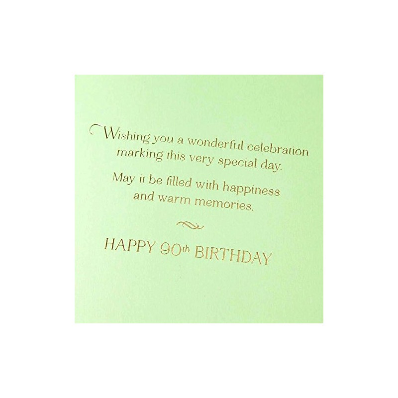 - Inside Message: Wishing you a wonderful celebration marking this very special day. May it be filled with happiness and warm memories. Happy 90th Birthday
