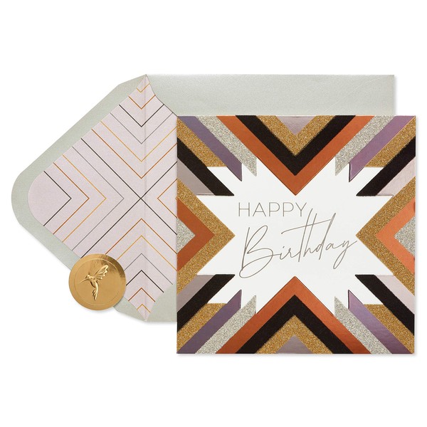 Share a one-of-a-kind birthday wish from Papyrus! This artfully crafted birthday card features a Happy Birthday message in the center of a layered paper design made with metallic foils and sparkling glitter. With high style and exquisite materials, cool birthday cards by Papyrus offer premium looks for everyone!