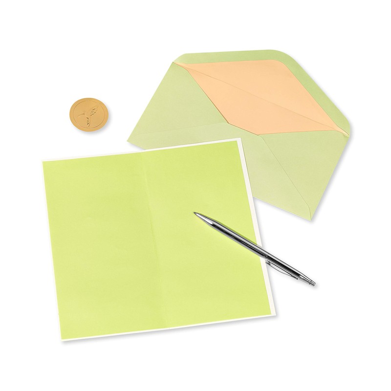 - Card measures 7.5 in. x 4 in. Envelopes and unique Papyrus gold seals included.