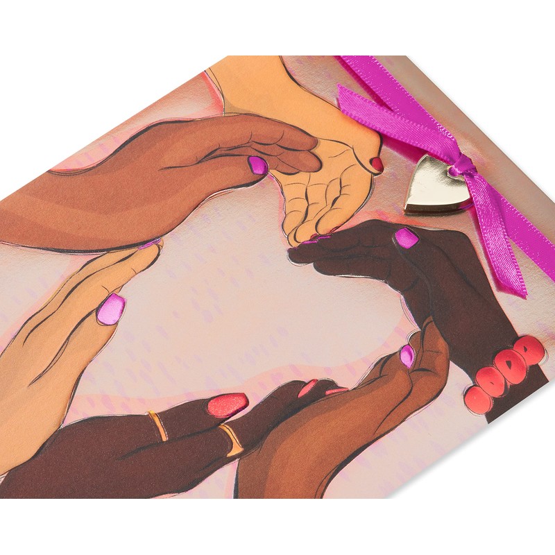 - Card features beautiful artwork embellished with foil, embossing, ribbon and charm attachment