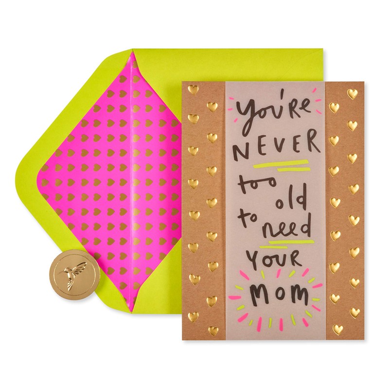 • This sweet Mother's Day card by Papyrus features embossing, a translucent paper overlay and shimmering foil embellishments