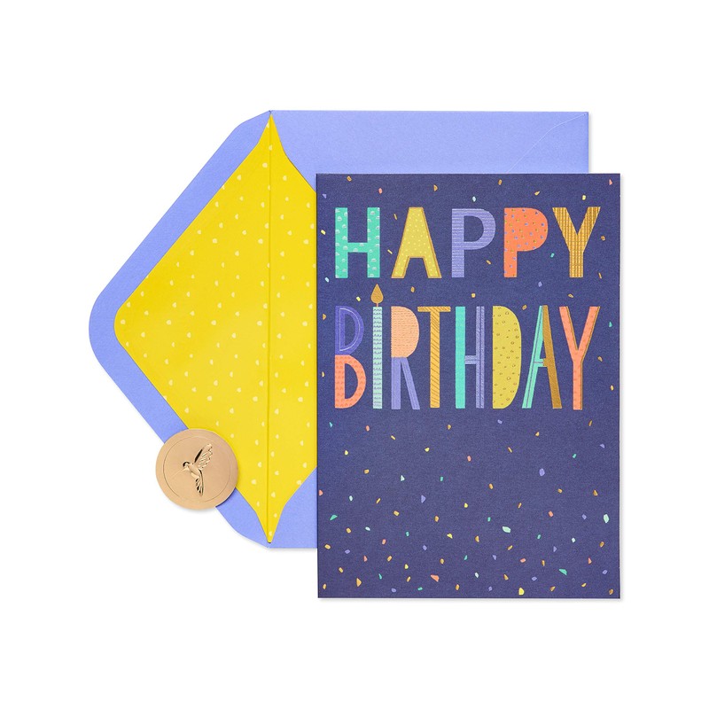 Brighten anyone's day with exquisitely crafted birthday cards from Papyrus! This fun birthday card features bold colors and block lettering all on quality paper stock. A coordinating envelope and a gold foil sticker help you deliver your message in style. It's perfect for celebrating anyone, including a friend, co-worker, mom, daughter, granddaughter, niece, aunt and cousin. When you're looking for extra-special birthday cards, Papyrus offers superior quality and signature craftsmanship they'll appreciate.
