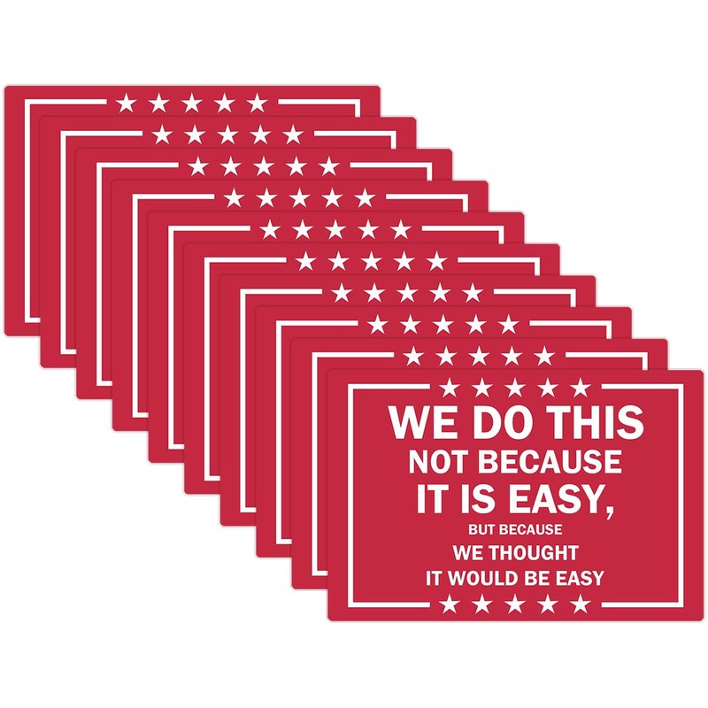 Paquete de 10 calcomanías de vinilo con texto en inglés "We Do This NOT Because IT is Easy Calcomanías para parachoques de coche, patineta, laptop, espectáculo de vinilo, impermeables, reflectantes