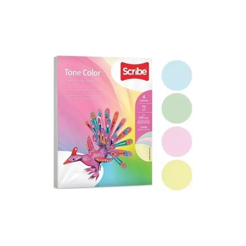 Paquete De 100 Hojas Tamaño Carta 4 Colores Pastel Tone