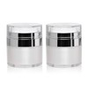 Paquete de 2 tarros de bomba sin aire de 0.5 onzas, recipientes de viaje cosméticos al aspiradora para lociones y cremas, tarros de viaje recargables sin aire, recipientes de muestras de maquillaje acrílicos vacíos con bomba blanca, 15 ml (0.5 onzas / 15