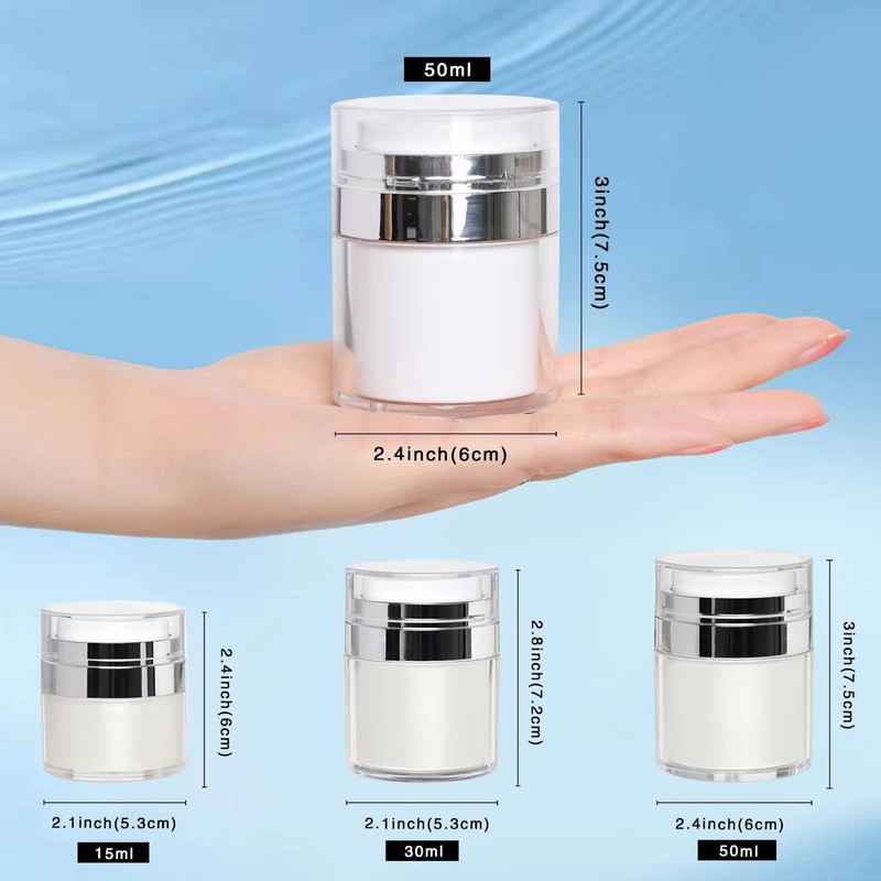 • Tamaño: recibirás 2 tarros de bomba sin aire de 0.5 onzas. Mide aproximadamente 2.1 x 2.4 pulgadas. Es portátil, perfecto para viajar.