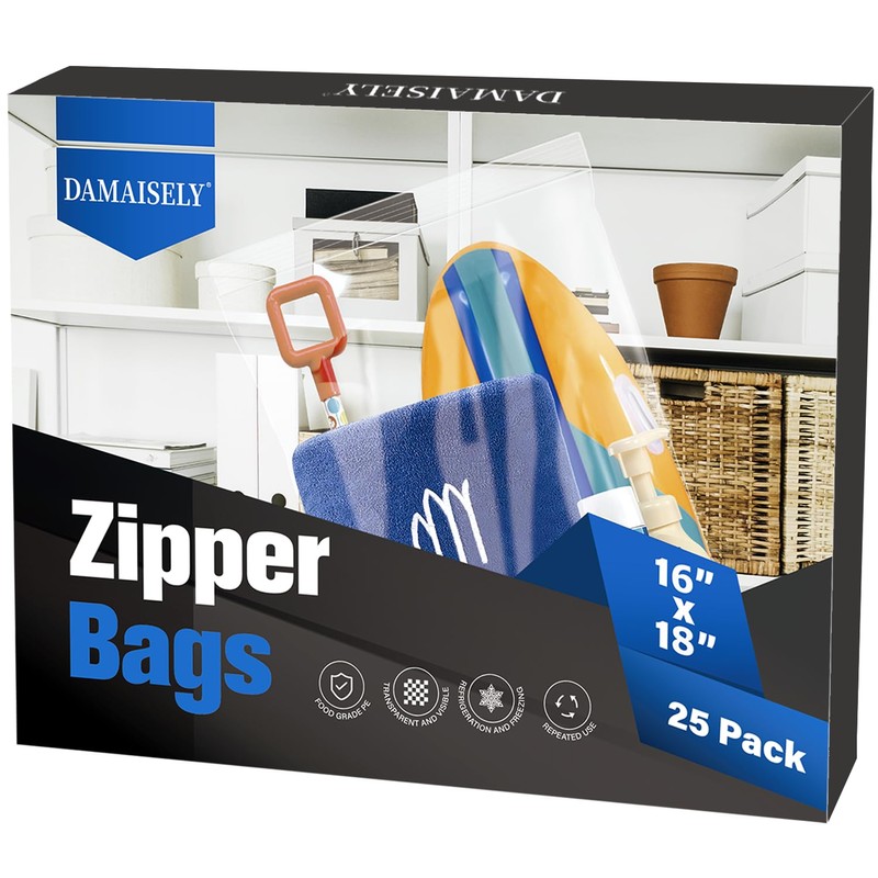 Paquete de 25 bolsas de almacenamiento con cierre de cierre de cremallera de 40,6 x 50,8 cm de grosor, transparentes y reciclables para ropa, almacenamiento de alimentos, preparación de alimentos, mudanza, viajes