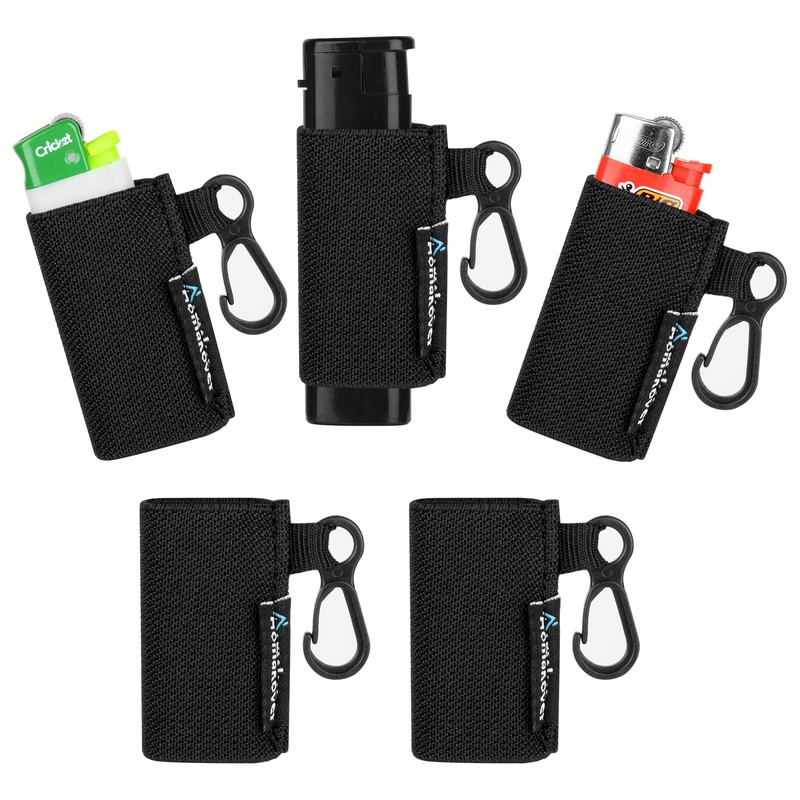 - Llavero con soporte para mechero: Este llavero de soporte para encendedor está hecho de tela elástica, que se puede utilizar para la mayoría de modelos más ligeros de diferentes. Con la parte superior e inferior abierta del soporte, no tendrás que sacar tu encendedor solo para usarlo.