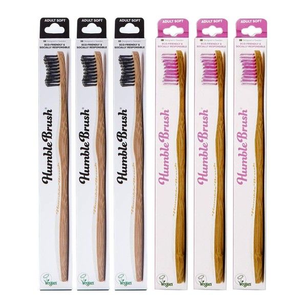 PAQUETE DE 6 CEPILLOS DE DIENTES ADULTO HECHOS DE BAMBÚ