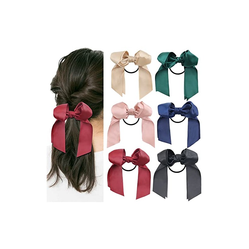Paquete de 6 lazos largos de satén con lazo para el pelo con lazo para cola de caballo, bandas elásticas de goma para moño, accesorios para mujeres y niñas