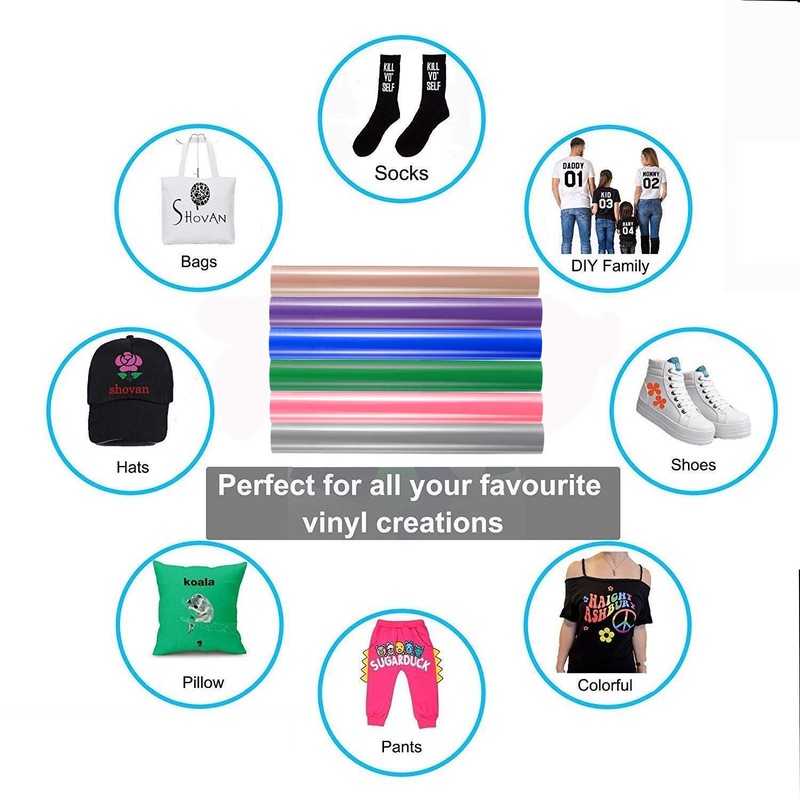 - ¿Cuánto puedo obtener? Tamaño: 11.8 x 9.8 pulgadas (-/+0.2) 6 colores diferentes de vinilo de transferencia de calor HTV, 1 ganchillo, gris/oro rosa/azul/púrpura/rosa/verde
