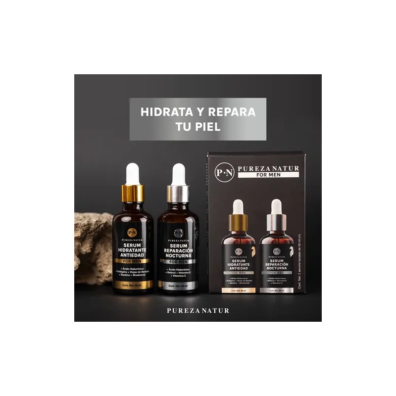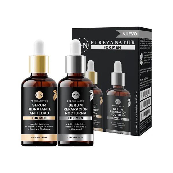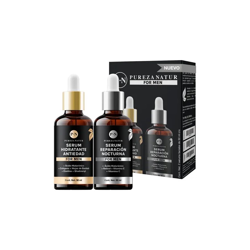 Paquete Sueros Cuidado Facial Hombre Serum Dia Y Noche 50ml Acido hialurónico, Retinol serums para rutina completa skincare masculino