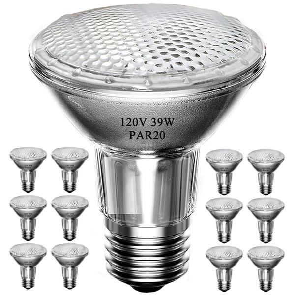 PAR20 39W Halogen Flood Light Bulbs 12PCS, 120V, E26 Medium Base, 2700K Warm White Dimmable for Indoor Spotlight, Range Hood Recessed Light Bulbs