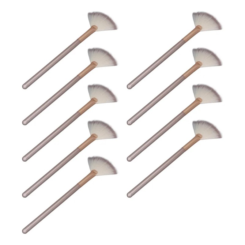 Brocha de maquillaje facial suave en forma de abanico de 3 colores, tubo de aluminio, cepillos aplicadores faciales para uso familiar