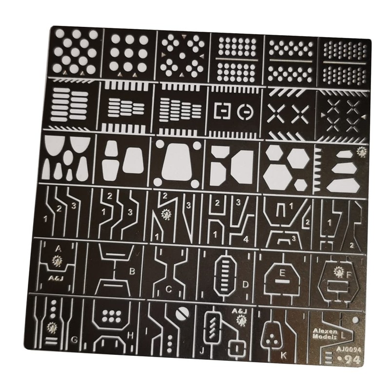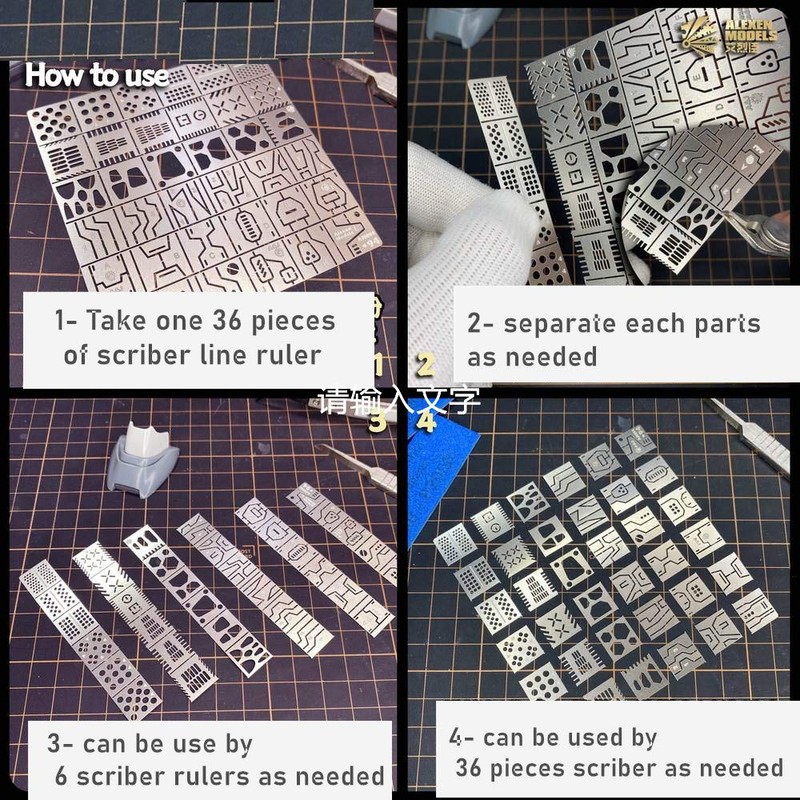 - AJ0094 y AJ 0095 está diseñado para tallar regla auxiliar, se adapta a kits de modelos Gundam 1/100 y 1/144 y modelo militar 1/35 36 piezas preplan, puede ser utilizado por 6 reglas o 36 piezas cuadradas de tallado, cumple con las variedades necesarias. Muy recomendado por modeladores principiantes y mayores.