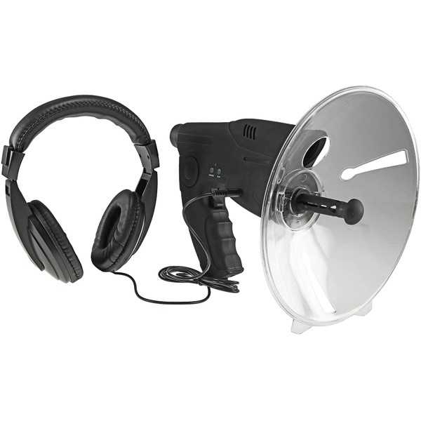 Parabolic directional microphone with headphones recording function, diameter 26 cm, max. 90 m range