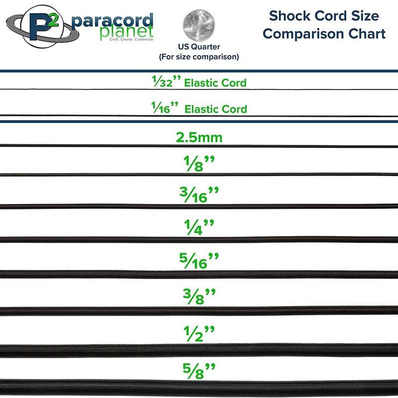 Paracord Planet Elastic Bungee Nylon Shock Cord 2.5mm 1/32", 1/16", 3/16", 5/16", 1/8”, 3/8", 5/8", 1/4", 1/2 inch Crafting Stretch String 10 25 50 & 100 Foot Lengths Made in USA