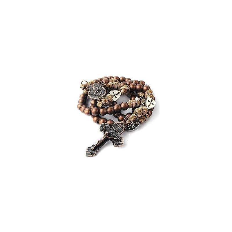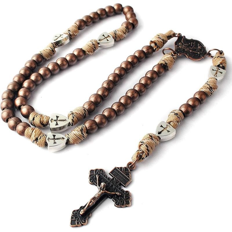 HanlinCC Large and Heavy Antique Bronze Metal Beads Rugged Durable Paracord Rosary Necklace with St.Michael Center Piece and Pardon Crucifix for Men
