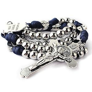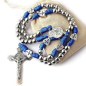Stainless Steel Beads Rugged Durable Paracord Rosary- Blue Virgin Mary Beads size dia.10mm,