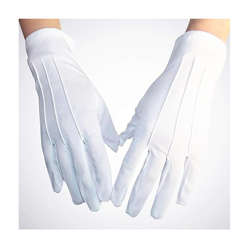 Parade Honor Guard Finger White Mittens Hands Protector Formal Gloves (White, L)