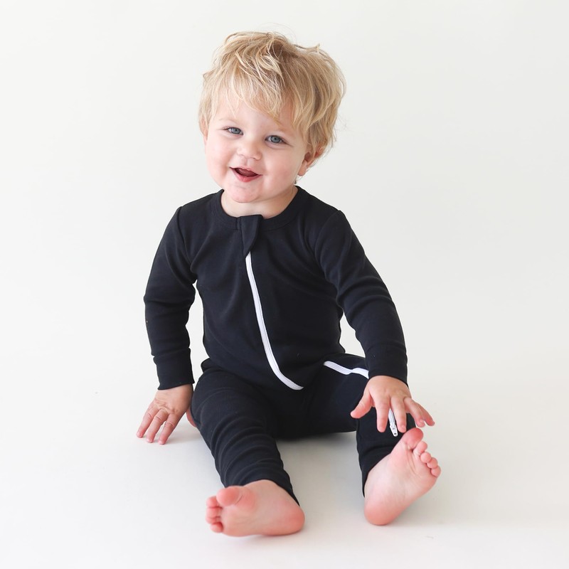 PARADE Organic Essential Basic '2-Way' Zipper Romper - Long Sleeve Black 3-6M with Mitts
