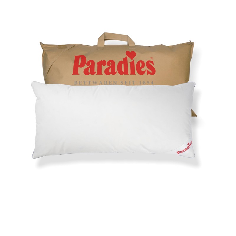 - Support filling: the solid feather pillow 40 x 80 cm in the down pillow 40 x 80 cm. The support filling of the multi-chamber cushion consists of 100% white, Paradise goose feathers (440 g), fully mature, class I and RDS certified. Thanks to the high feathers content in the support filling, the down pillow 40 x 80 cm remains dimensionally stable and offers a high level of support.