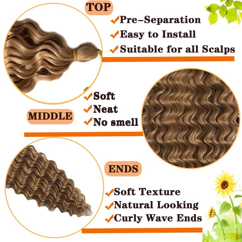 - 1.【Deep Wave Braiding Hair Material】: The Curly Braiding Hair made of Low Temperature Fiber Synthetic Hair, Soft and Silky, Give You Human Hair Feeling.