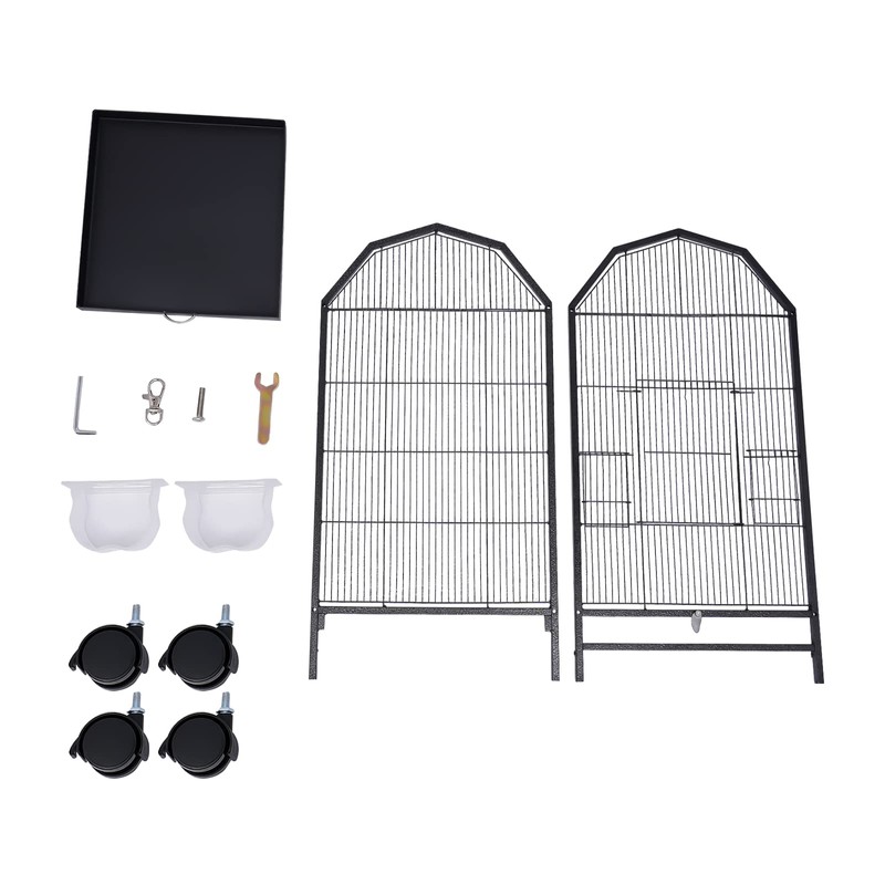 Feeding Cups: The bird cage comes with 2 feeding cups that are made of food-grade PP material, so the birds can enjoy their meals without having to leave home.