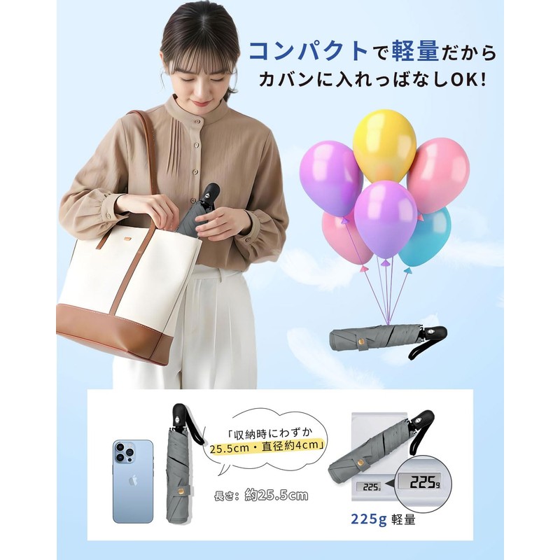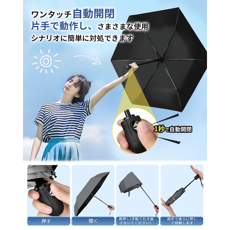 Parasol Folding Umbrella, Ultra Lightweight, 7.9 oz (225 g), UV Reduction, 100% Shading Rate, UV Protection, One-Touch Automatic Open/Close, For Both Sunny and Rainy Weather, Folding Umbrella