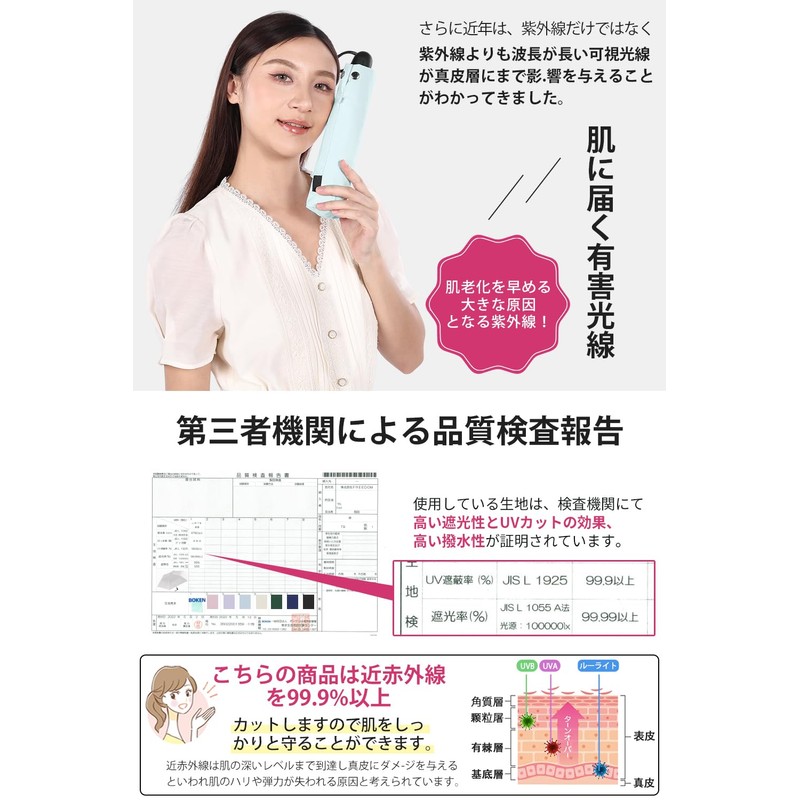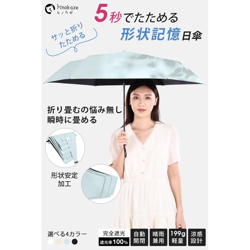Parasol, Lightweight, 6.3 - 7.8 oz (189 - 199 g), UV Protection, 100% Full Light Blocking, Heat Blocking, One-Touch Automatic Opening/Closing Umbrella, Compact, Folding Parasol, UV Protection