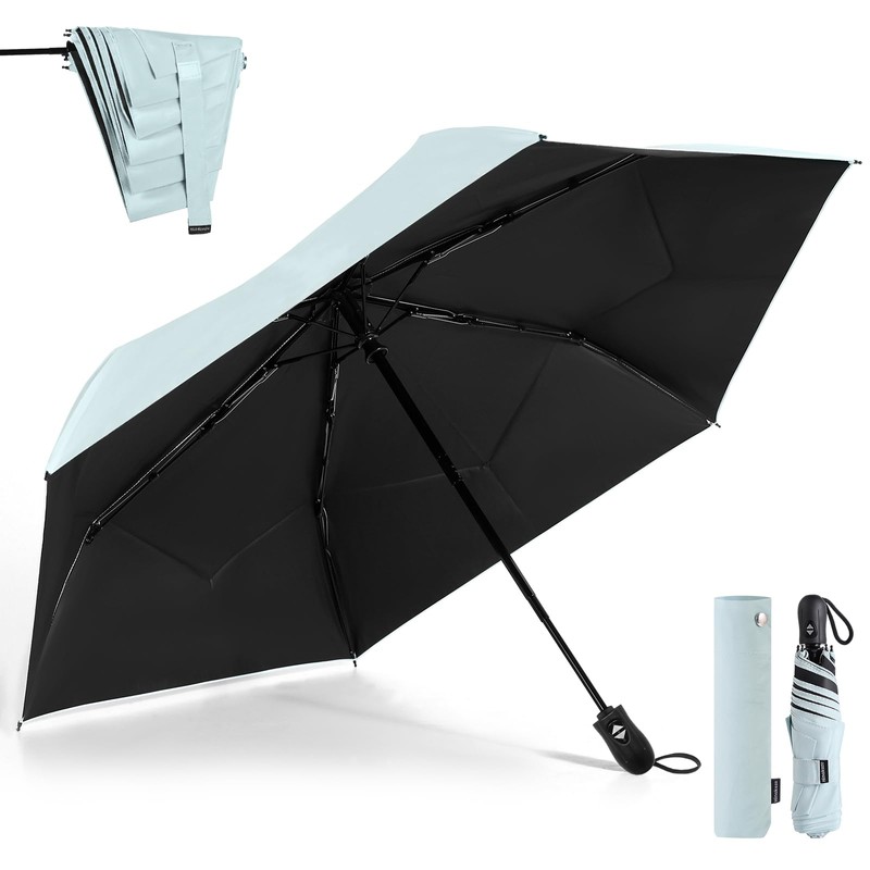 - Lightweight and Portable: The folding sun umbrella has a flat design that can be easily put into your bag. The folded thickness is only 1.6 inches (4 cm), length is 10.0 inches (25.5 cm), weight is about 6.3 oz (189 g). Ultra compact body use? Convenient to carry. It can be used in all weather conditions, rainy day, snowy or sunny weather. One-touch automatic open and close folding umbrella for men and women. Can be used for commuting to school, work, excursions, travel, business trips, etc. (Note: Due to the difference between different displays, there may be slight differences in color, so please refer to the actual product. )