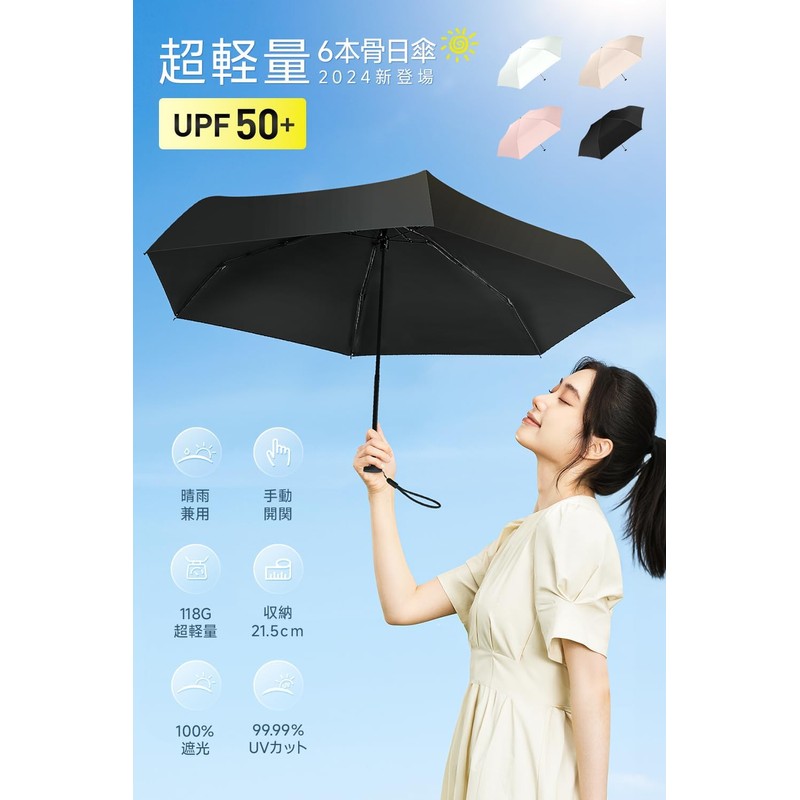 Parasol, Ultra Lightweight, 4.6 oz (118 g), UV Protection, 99.99% UPF50+, 100% Full Light Blocking, Heat Shield, One-Touch Automatic Opening/Closing, Folding Umbrella, Compact, Folding Parasol, UV