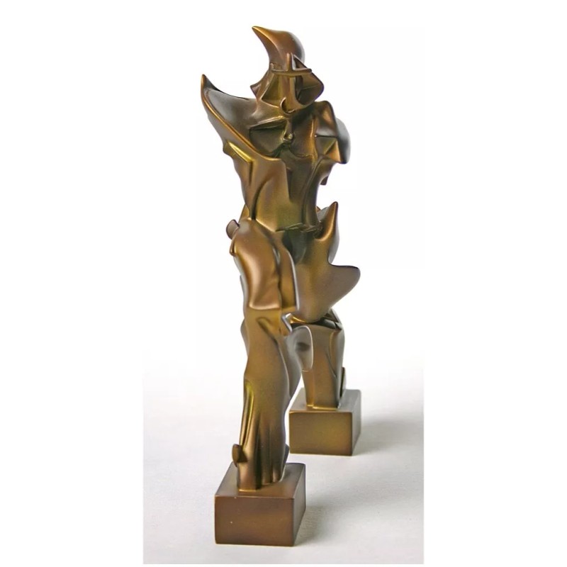In 1912, Boccioni wrote his Manifesto technico della scultura futuristica. He advocated experimenting with the simultaneous use of different materials in dynamic forms, with a focus on the "abstract reconstruction and not the figurative, form-determining meaning of planes and volumes". The bronze figure with the telling title Unique forms of continuity in space (Forme uniche della continuita nello spazio from 1913) reflects his approach to life, as a futurist, which was lively, dynamic and future-oriented.