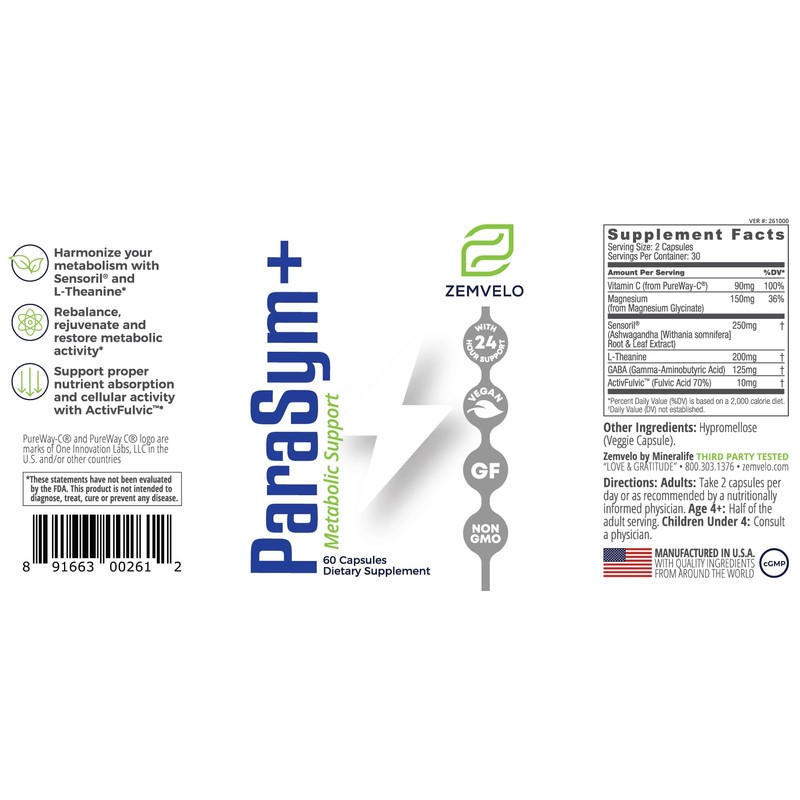ParaSym+ - Aids Metabolic Activity | Assists Healthy Sleeping Patterns | Supports Cognitive Function | 30 Day Supply