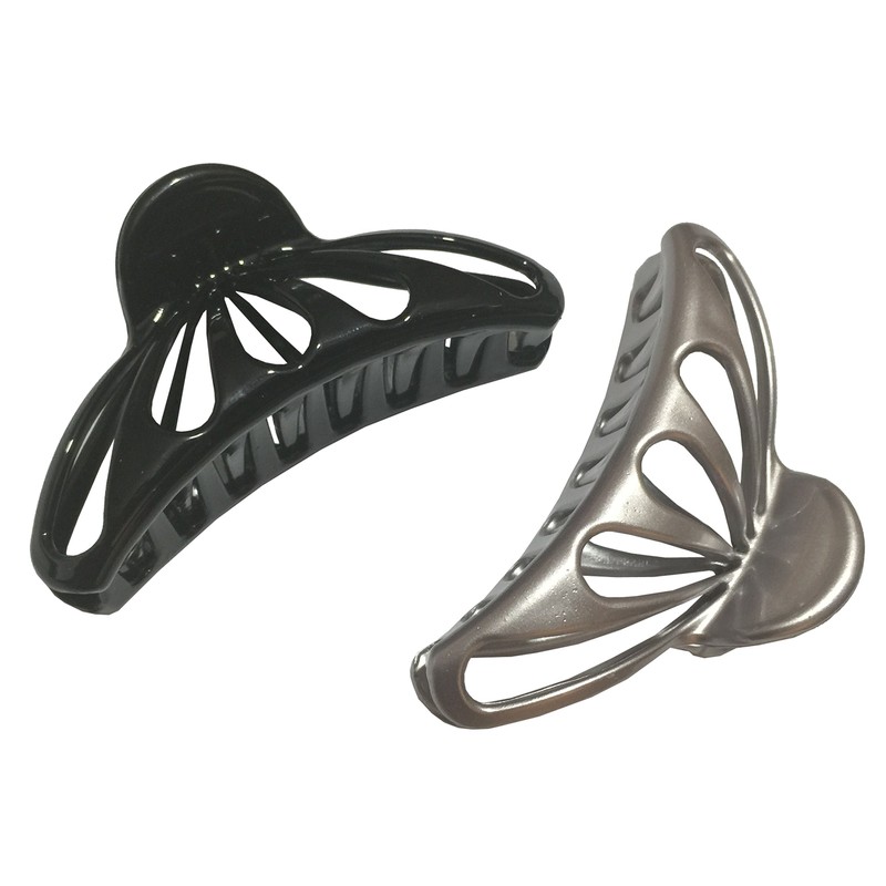 Parcelona French Rain Drop Set of 2 Small Silver Grey and Black Celluloid Jaw Hair Claw Clip with Covered Spring