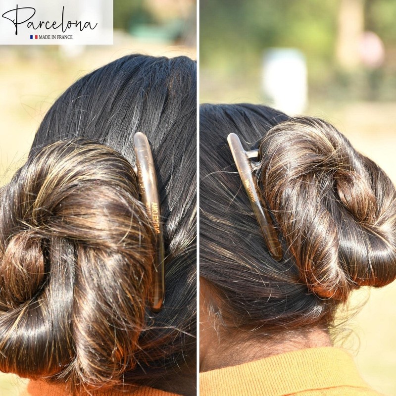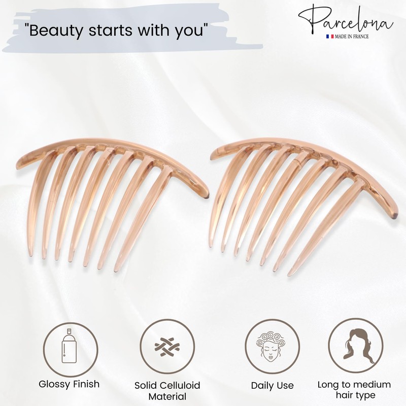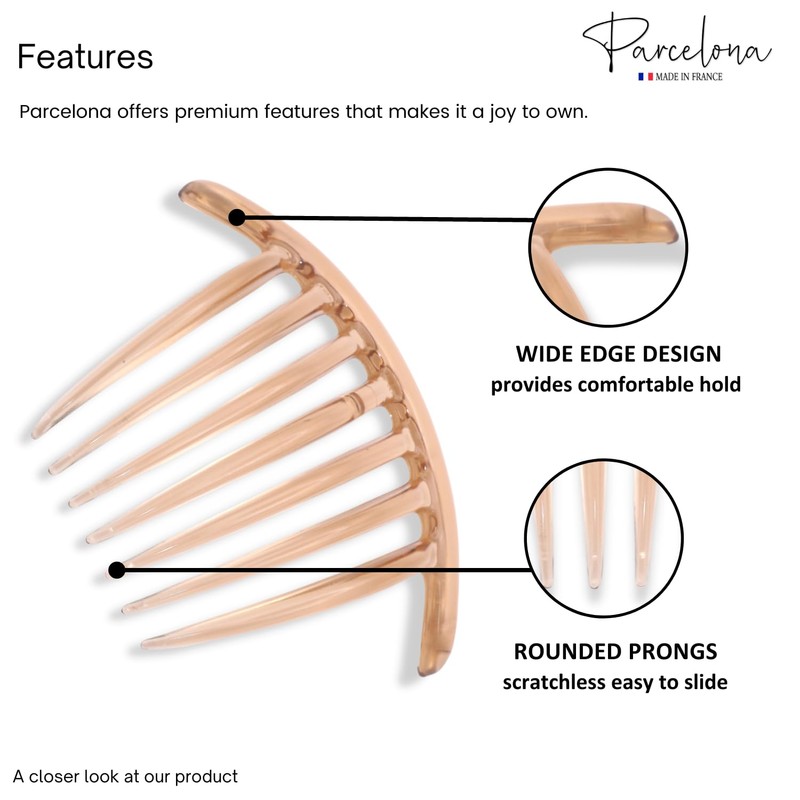 Parcelona Peine lateral de 7 dientes de carey de celuloide grande (marrón cristal)