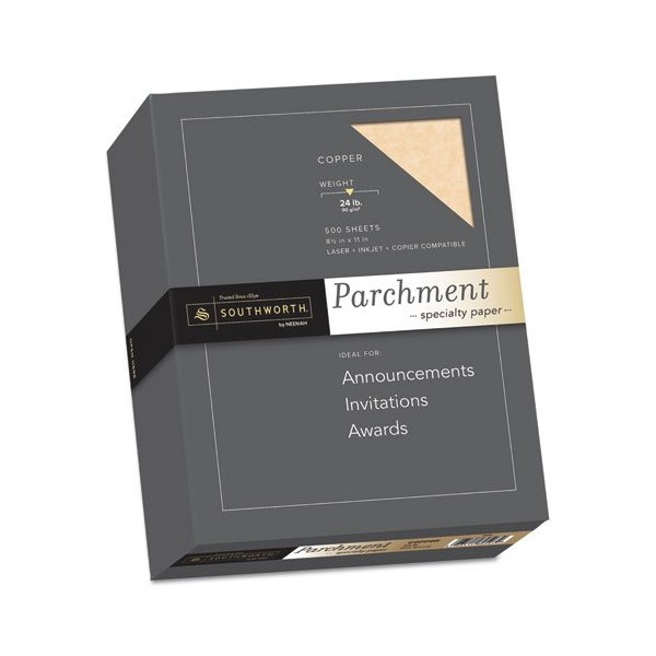Adds an old-world elegance to your communications. Ideal for awards, certificates, invitations, menus and more. Laser, inkjet and copier compatible. Acid- and lignin-free. Size: 8 1/2 x 11; Paper Color(s): Copper; Paper Weight: 24 lb; Sheets Per Unit: 500.