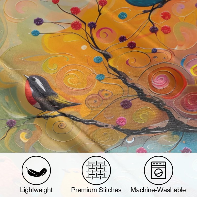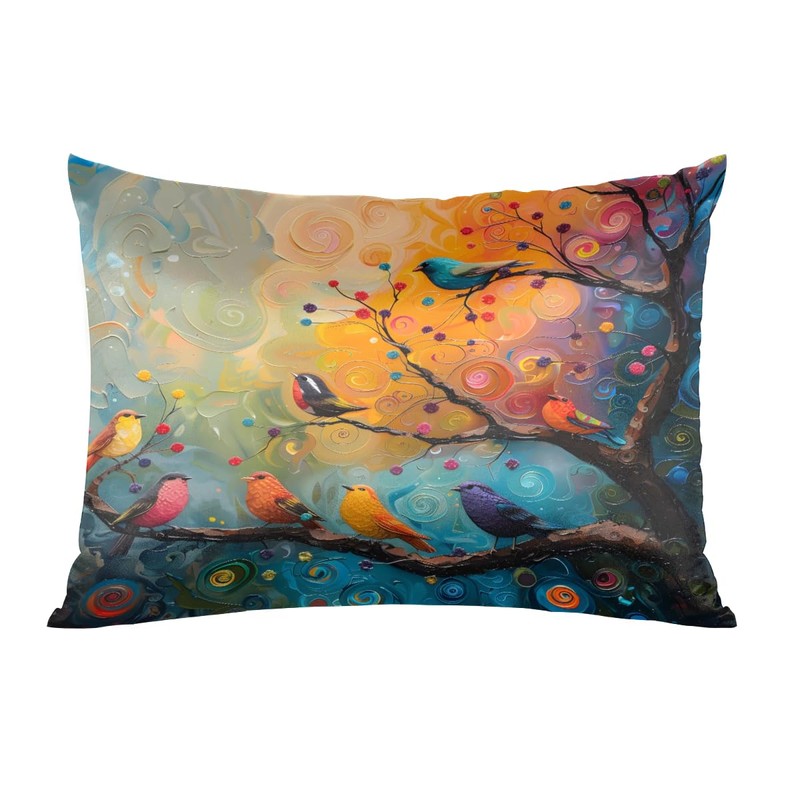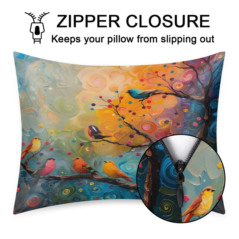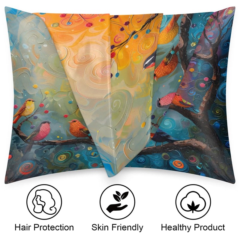 Pardick Satin Pillowcase for Hair and Skin, Watercolor Branch Birds Silk Pillowcase with Zipper, Soft Silky Pillow Cover Standard Size (20x26 Inches), Slip Cooling Satin Pillow Cases