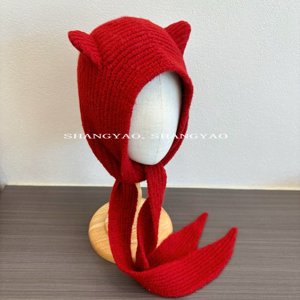 Parent-Child Devil Ear Balaclava Hat for Kids & Adults lf2102 Red + Child 3ea