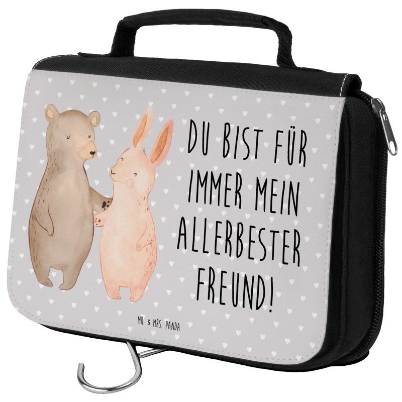 - 100% loving – this beautiful toiletry bag for hanging by Mr. and Mrs. Panda is suitable for both men and women. Even if you have many utensils to store in your wash bag: in this model there are additional compartments with zips for cosmetics and hygiene items that ensure order. The cosmetic bag or make-up bag has the size of 22.5 x 18 x 9 cm to make so little space and weight in the suitcase