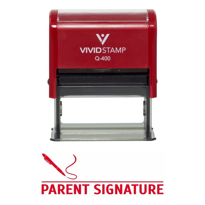 Parent Signature Teacher Self Inking Rubber Stamp (Red Ink) - X-Large 2 Pack
