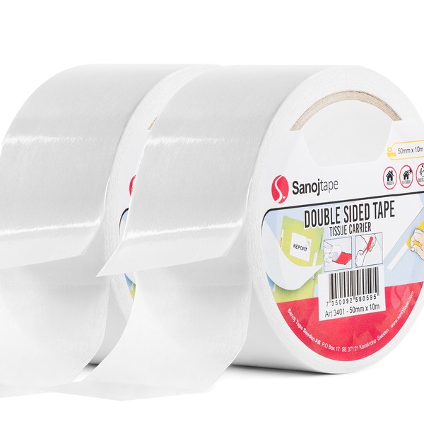 - From Sanoj tape Sweden: universal double-sided tape. A tape for universal use such as office, photos, craft projects, scrapbooking and labels. A double sided tape for all day use